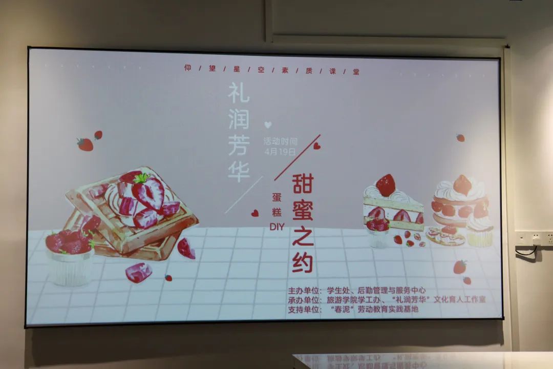 为牢固树立劳动最光荣、劳动最崇高、劳动最伟大、劳动最美丽的观念。4月19日,后勤中心联合旅游学院,共同承办了传统糕点制作活动。全校60余名学生在西式面点师一级高级技师、金华市技术能手杜辰昊老师的带领下,体验亲手制作糕点的劳动乐趣,学习糕点制作的技术手法,并将劳动成果—糕点美食展示在春泥劳动实践基地(金湖食堂一楼)向全校师生进行分享。