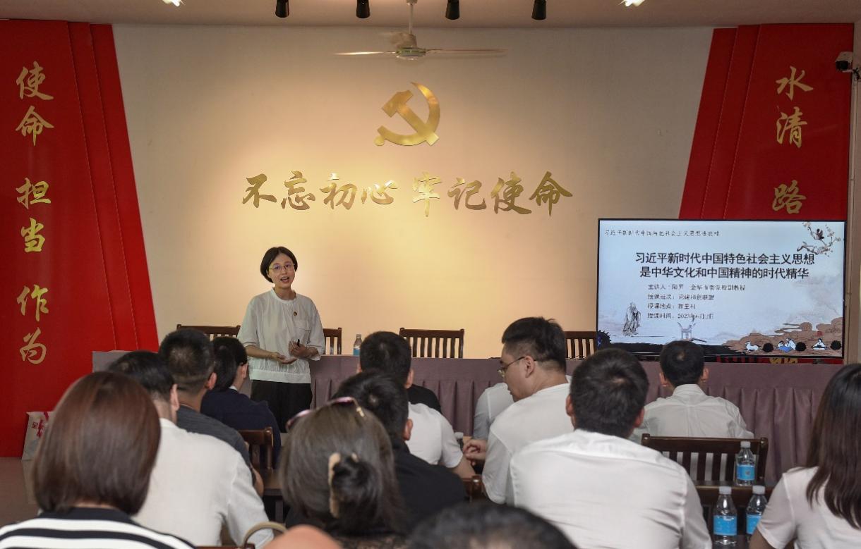 市委党校陆昇教授为大家上了一堂关于《习近平新时代中国特色社会主义思想是中华文化和中国精神的时代精华》为主题的精彩党课。通过回顾中国共产党百年光辉历程,诠释了中国共产党人的精神谱系,引导党员厚植爱党、爱国、爱社会主义的情感,弘扬伟大建党精神,赓续共产党人精神血脉。