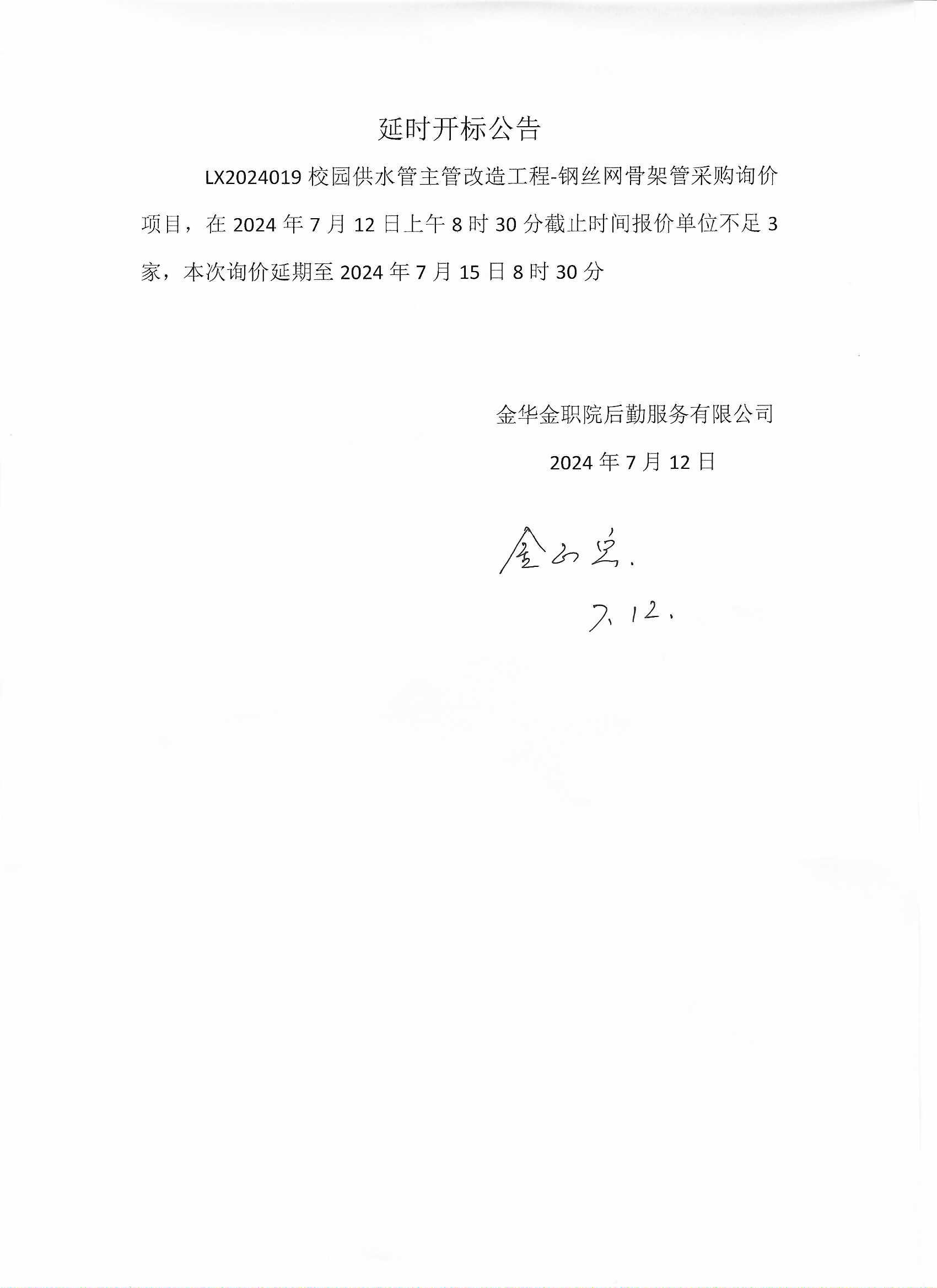 LX2024019校园供水管主管改造工程-钢丝网骨架管采购延期开标公告
