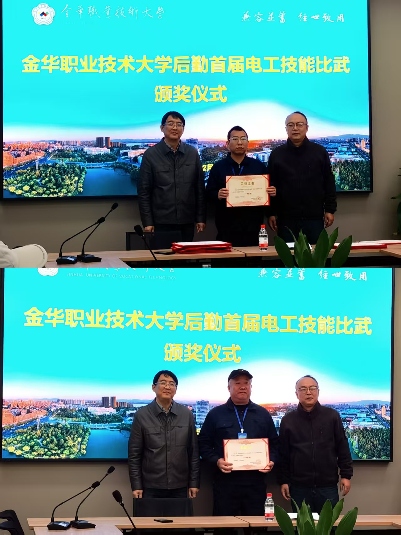 12月15日,比武颁奖仪式顺利举行。校园服务保障中心副主任王飞、来晓俊出席并为获奖选手颁奖。王飞在致辞中向获奖选手及全体电工致以祝贺与感谢。他高度肯定了电工队伍作为校园“神经中枢”和“隐形守护者”的重要作用,并指出本次比武是以赛促学、提升技能的重要平台。他希望全体电工以比武为契机,持续学习、坚守安全、发扬协作,不断提升专业水平,共同打造技术过硬的后勤保障队伍,为学校高质量发展贡献力量。