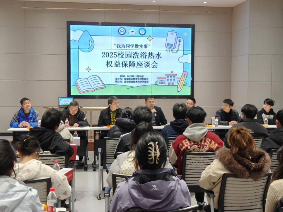 近期,学校后勤处与浙江正蓝节能科技股份有限公司携手举办了一场主题为“我为同学做实事”的校园洗浴热水权益保障座谈会。此次会议特邀学生会权益服务部、各公寓学生代表及宿管代表共同参与。