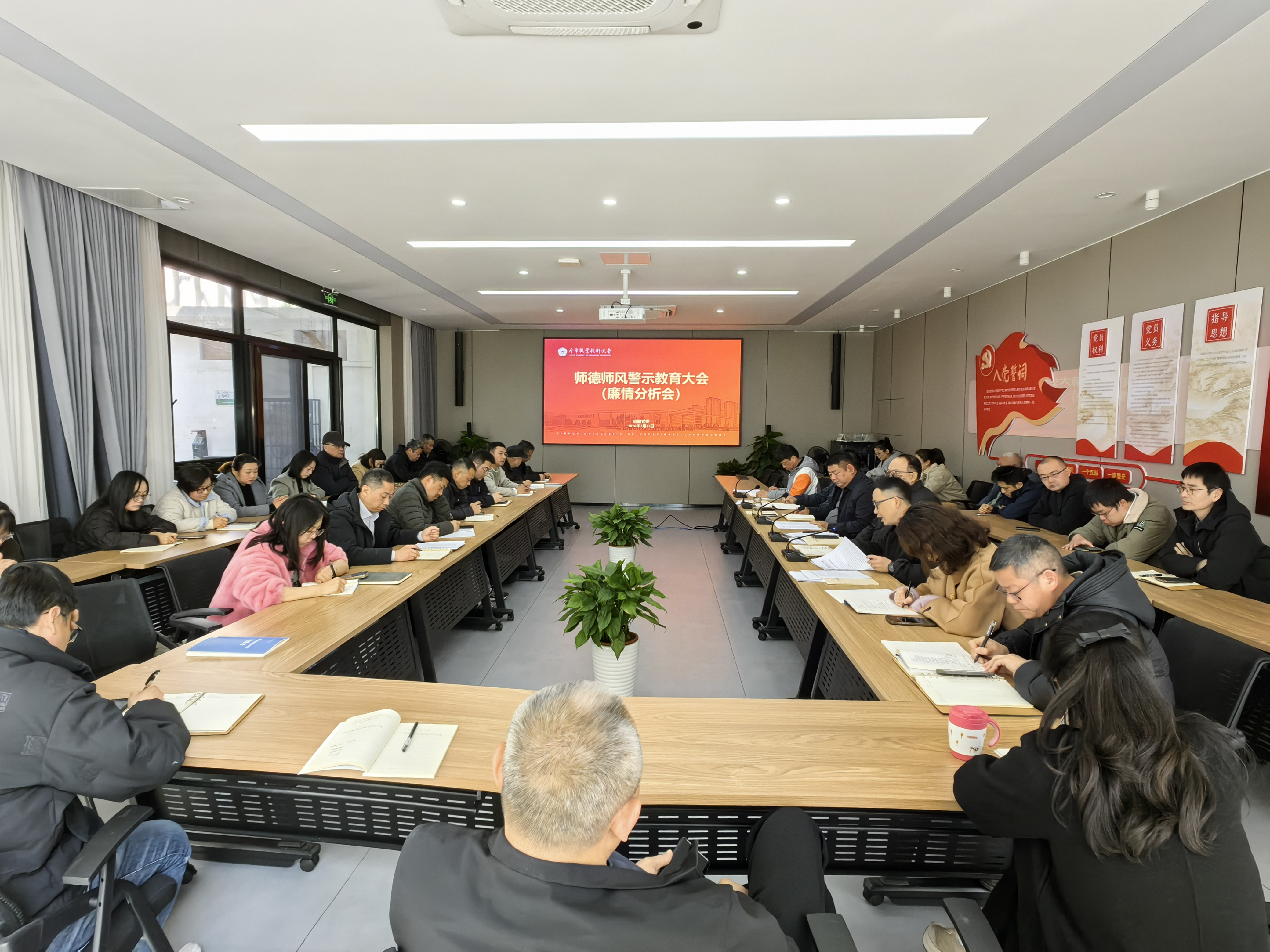 3月11日上午,后勤处召开师德师风专项整治工作部署会暨廉情分析会。后勤处全体教职工、编外人员党员代表参会。会议由后勤党委书记王春国主持。