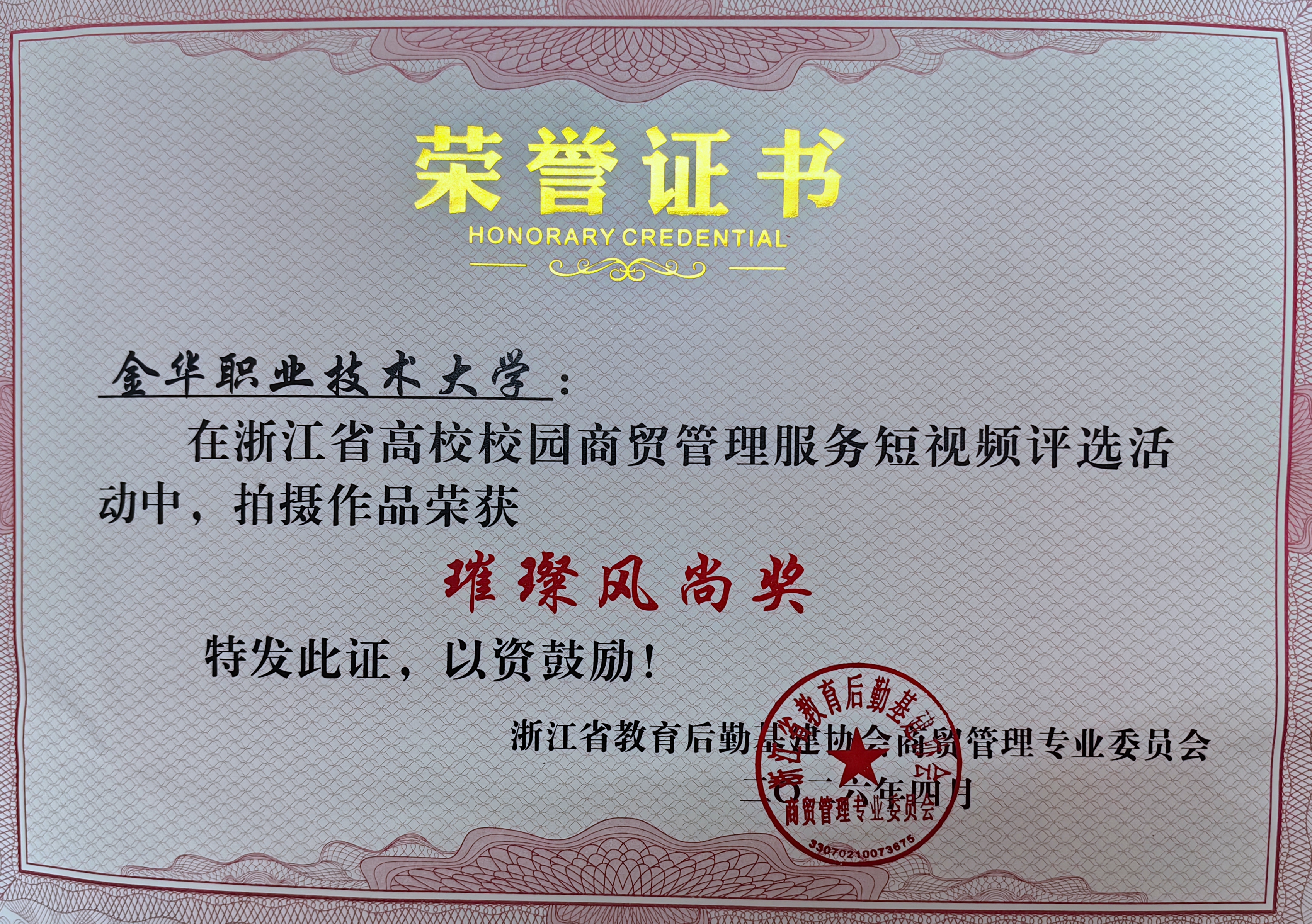 获浙江省高校校园商贸管理服务短视频评选活动璀璨风尚奖